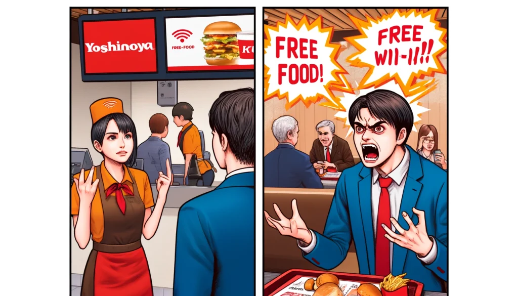 - Wi-Fiが繋がらないことによるクレーム: KFCでWi-Fiが繋がらないことに腹を立て、チキンを無料にするよう要求した事例。