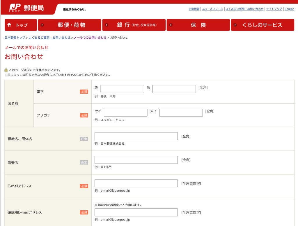 ・日本郵政お問い合わせフォーム【日本郵政公式HP】