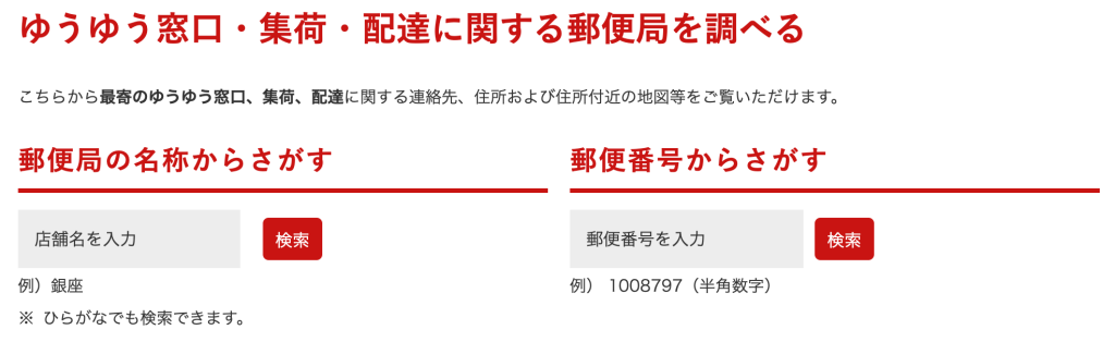 ・ゆうゆう窓口・集荷・配達に関する郵便局を調べる【日本郵政公式HP】